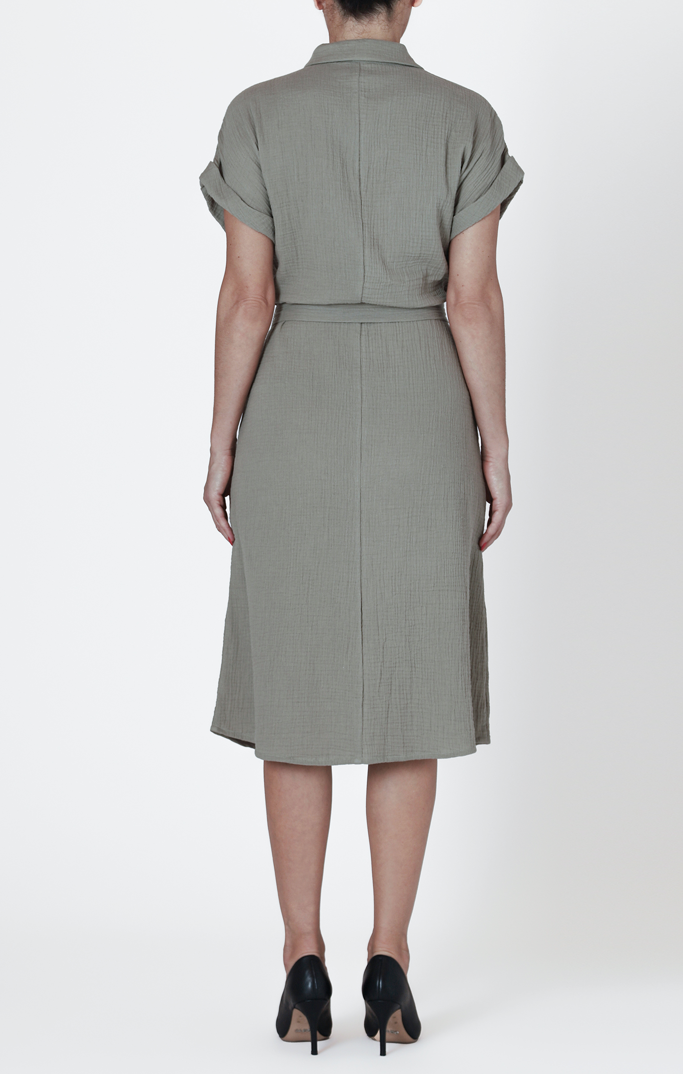 Details: Experience effortless style with our Utility Shirt Dress in Sage. Made from cotton, this dress offers a relaxed fit for a comfortable and casual look. Simple and versatile, this dress is perfect for any occasion. Elevate your wardrobe with this must-have piece!