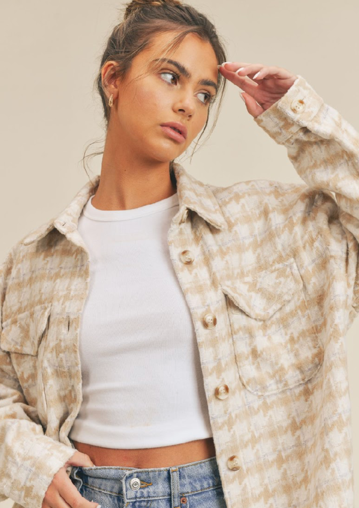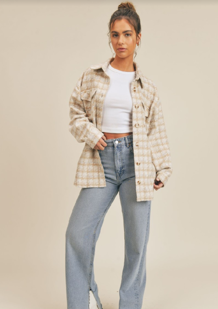 Lesley Houndstooth Shacket | Beige