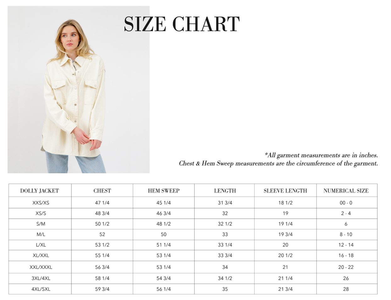 Dolly has the same overall shape, gorgeous metal hardware and large chest pockets as the Shania. She’s just not quite so oversized! You’ll find this mostly through the width of the body, and the width and length of the sleeves. Dolly fits true to size, so we recommend going with your true-size at Brunette, whereas with the Shania, you’d size down. If you’re an XS/S in the Shania then you’ll be a S/M in the Dolly. If you’re looking for something even more fitted or oversized, then you can always size up or down as needed - just like the rest of your Brunette pieces. The goal is that most of our customers can buy their true-to-size fit and love the size.