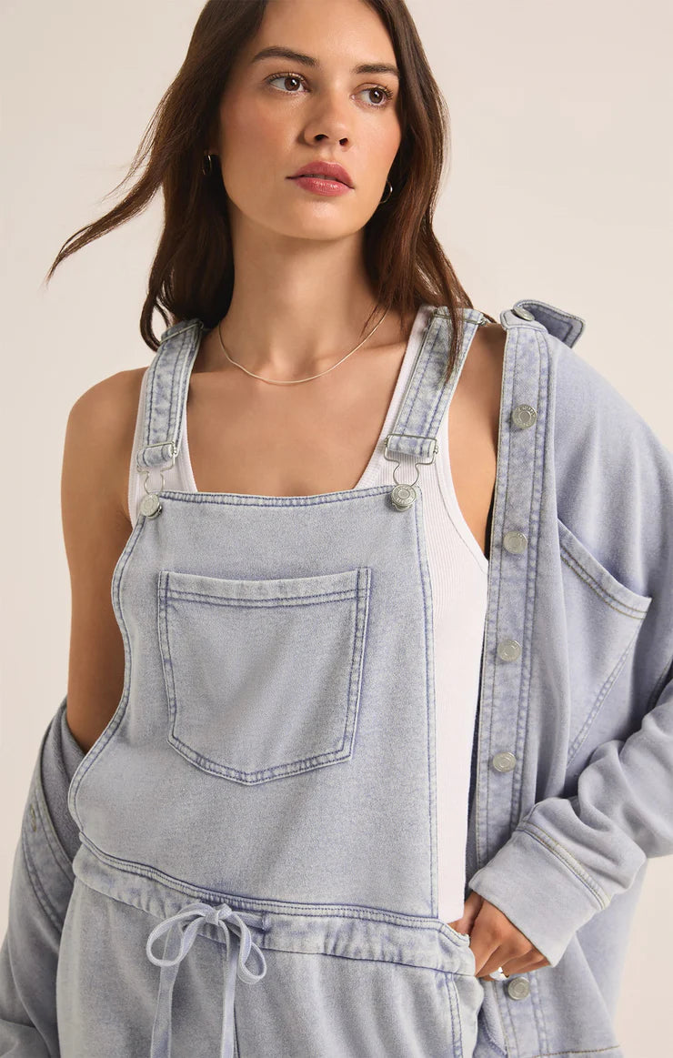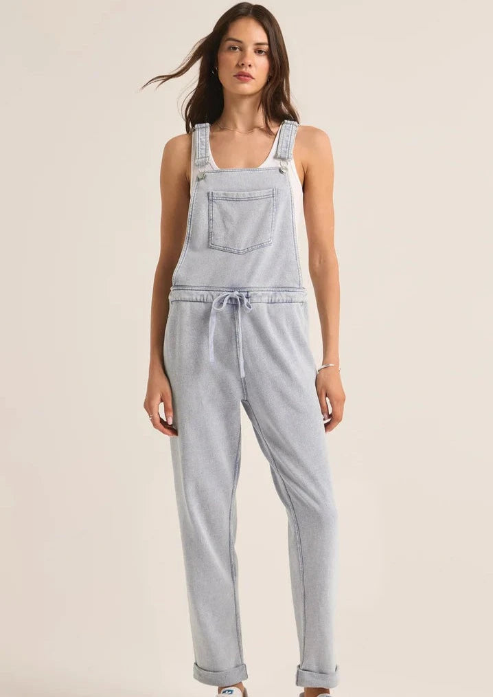 Get ready to rock your casual style with our ankle length knit denim overalls, complete with overall straps and a drawstring waistband for the perfect fit. Made from midweight knit denim french terry with adjustable straps and patch pockets, these overalls will have you ready for any adventure.