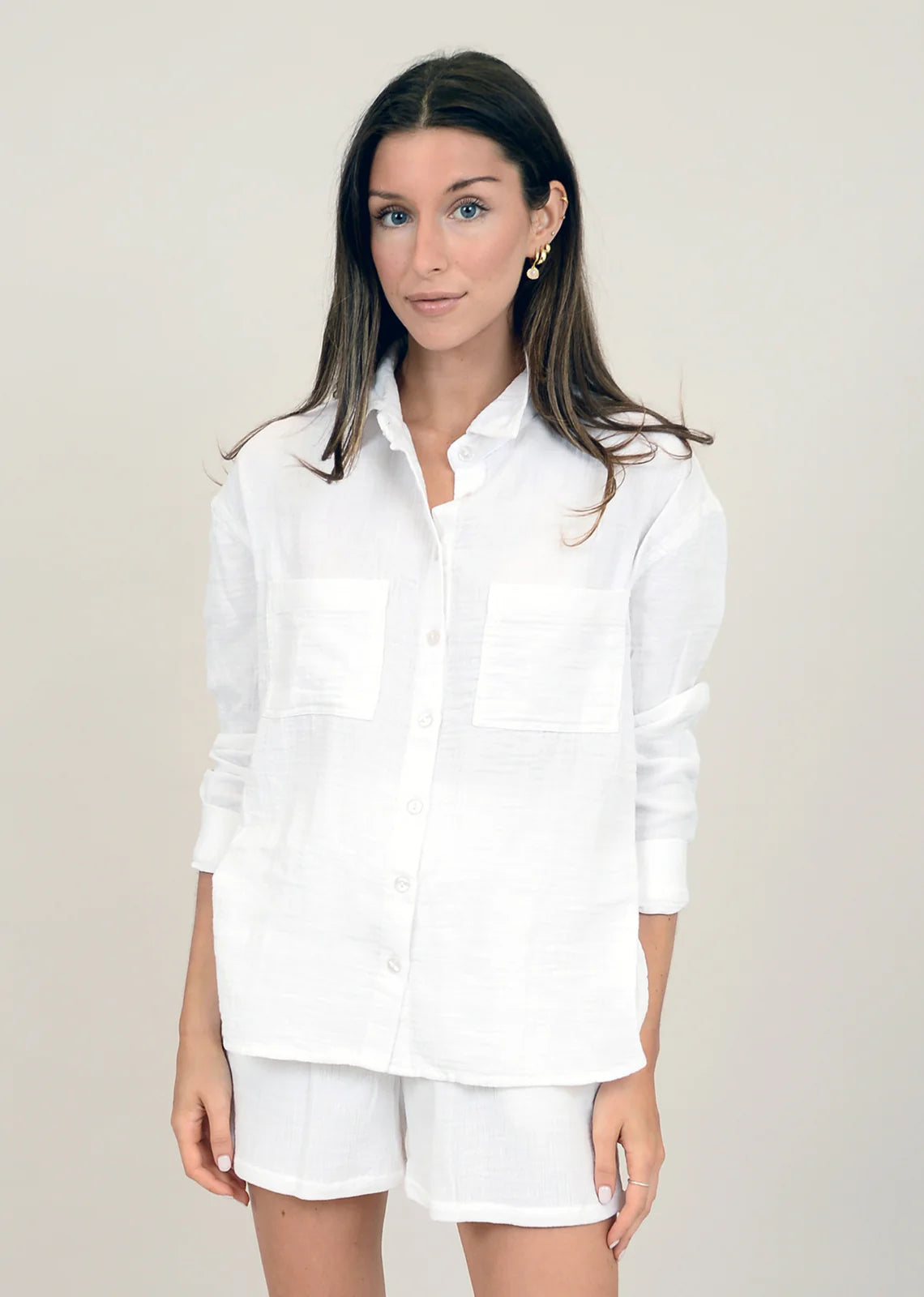 Gauze is trending this season and we understand why! Add this versatile gauze shirt to your closet for easy decisions. Pairs with the Elowen Bubble Gauze Shorts for the cutest matching set! Also available in black and cinnamon.