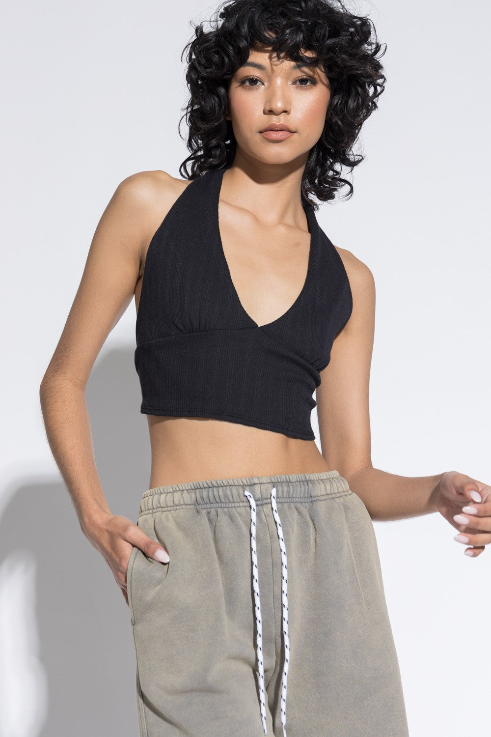 Rachel Halter Neck Crop Top | Black