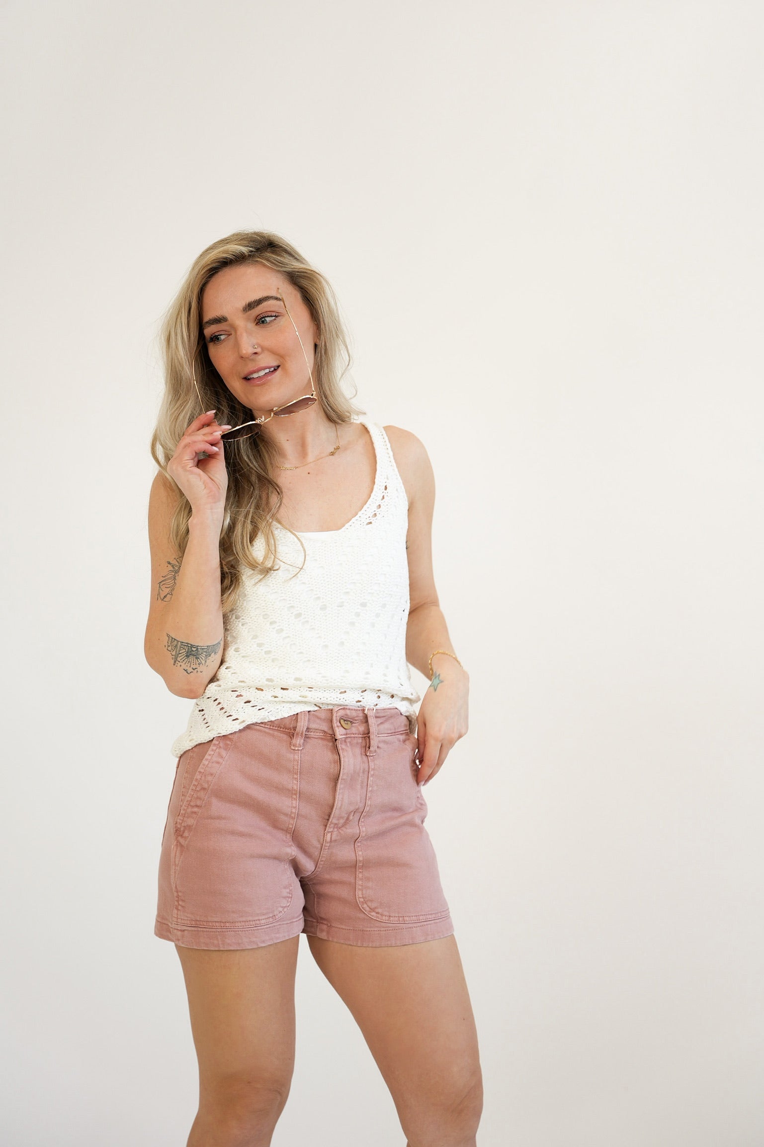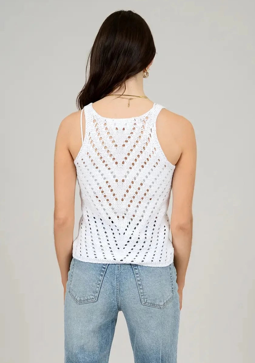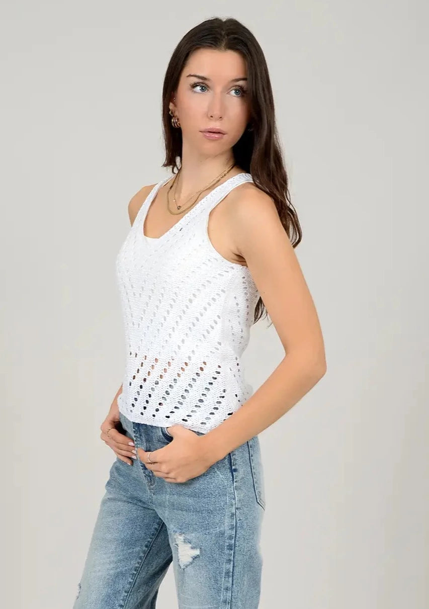 A vintage tank with a crochet design, adding dimension to any spring/summer look.