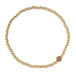 - Materials: 3mm round brass beads, brass logo bead, stretch cord.