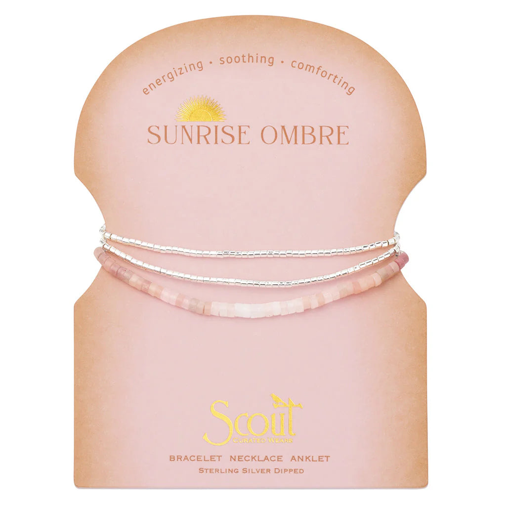 Strung with gracefully gradient semi-precious gemstones. Our newest wrap is made to embellish the wrist, ankle or neckline.