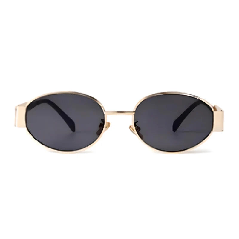 This stylish and trendy new oval frame is the perfect addition to your eyewear collection. Featuring gold hardware and grey lenses, this pair of shades is easily styled with any outfit and sure to get all the compliments.