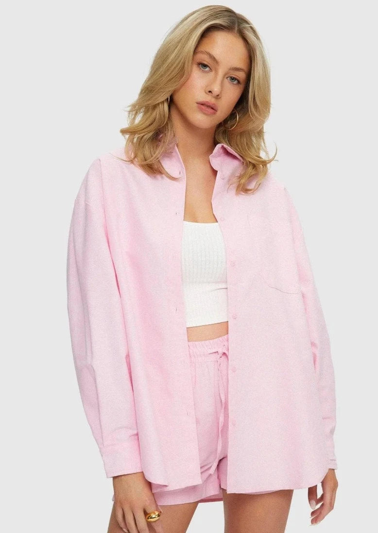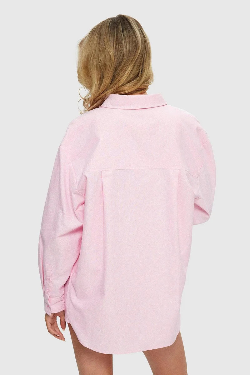 Our timeless oxford blouse features a classic thigh-length cut, spread collar with button-down front closure & buttoned cuffs. It also has a patch pocket at the chest and tonal stitching throughout.