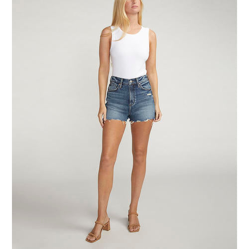 Introducing the highly coveted Highly Desirable style, now in a short. Fitted through the hip and thigh for a ‘90s-inspired short that flatters, lengthens legs, and has an epic butt-lifting effect. Trendy frayed hem with distressed vintage-inspired details.