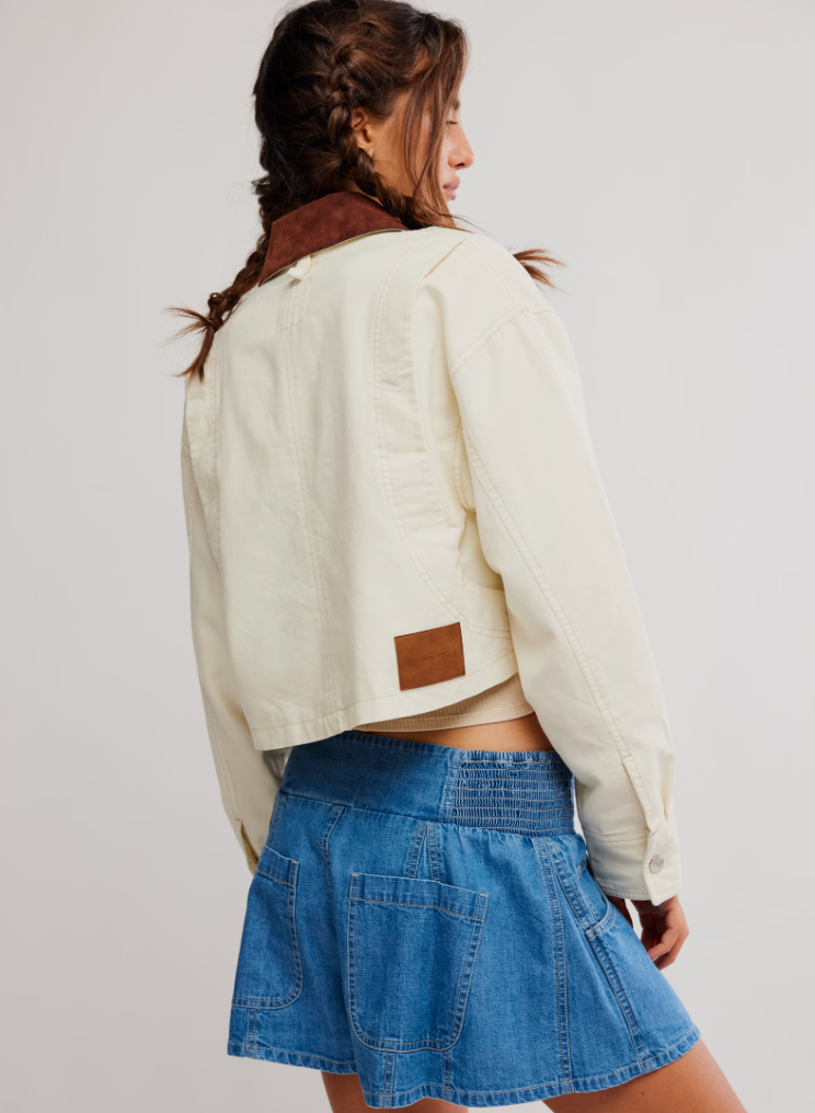 The true definition of an effortless essential, this wear-anywhere workwear jacket from We The Free is featured in a super-cropped, boxy silhouette with exaggerated pocket detailing for the perfect utility-inspired touch.