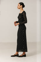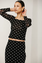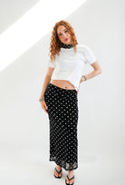 Mesh Maxi Tube Skirt | Black with White Polka Dot