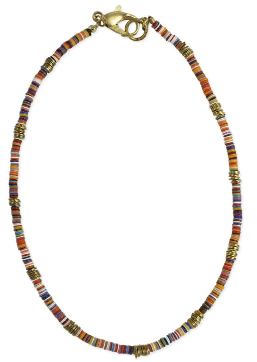 The perfect every day anklet! Multi color sequins and slim style make this the ideal accessory to slip on and go! Burnished gold and bright color sequin beads.