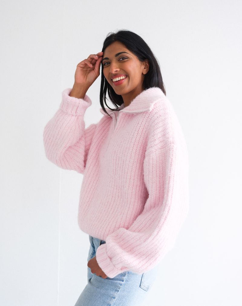 The perfect blend of cozy and chic. This half-zip trucker neck sweater features a relaxed fit and soft knit fabric, making it easy to style up or down. Wear it zipped for a polished look or open for laid-back comfort.