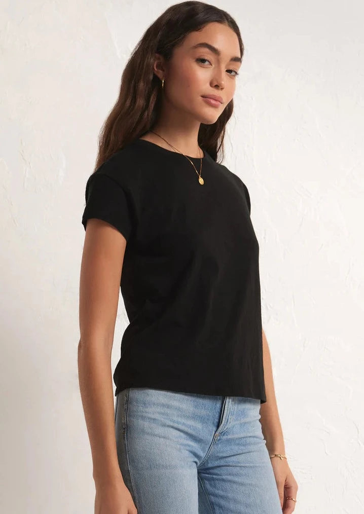 This essential tee is a must-have in every closet! This casual wardrobe base-layer essential is great for layering and looks so good with your fave pair of jeans.