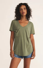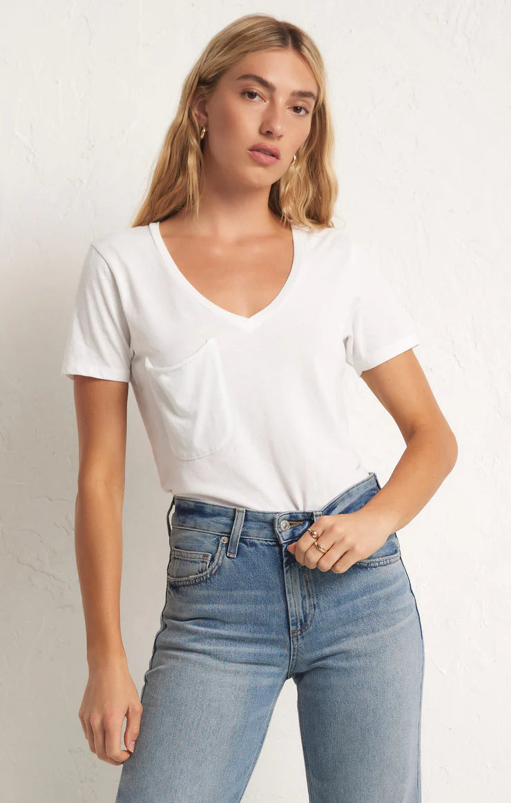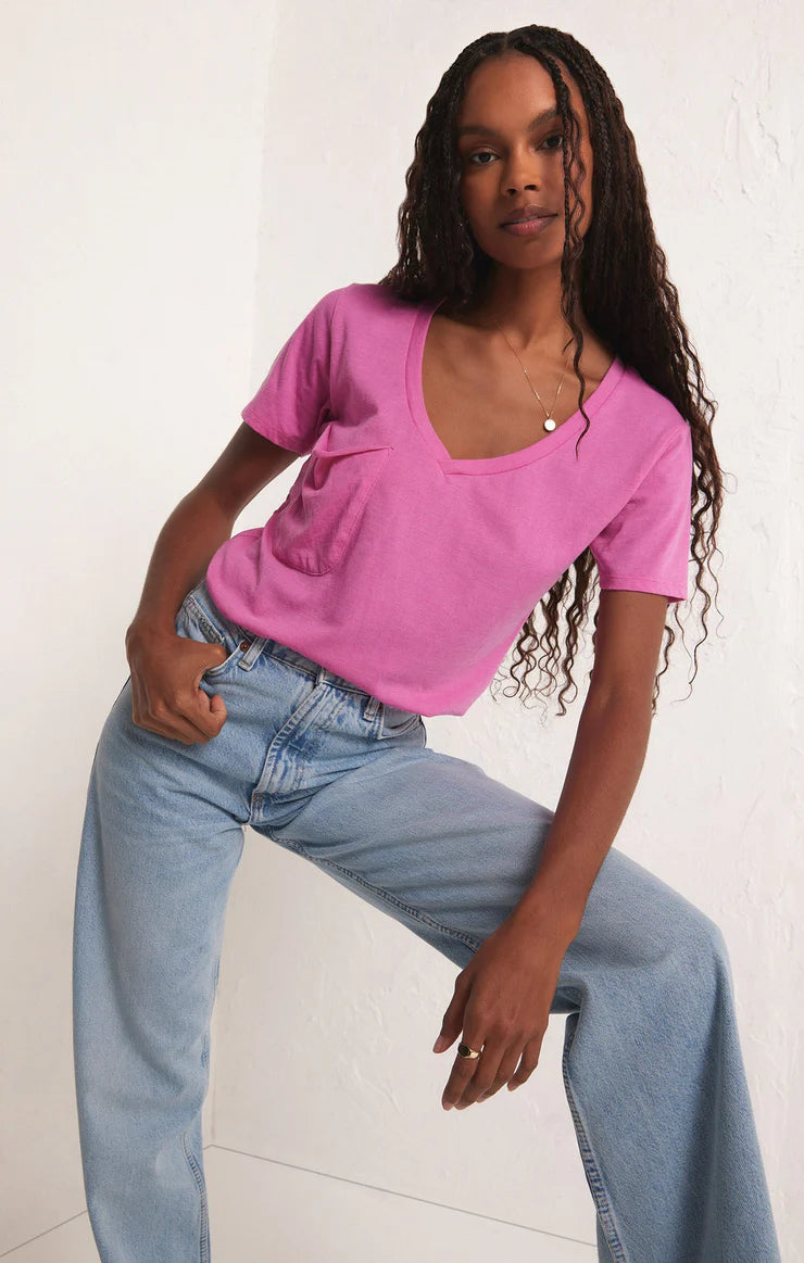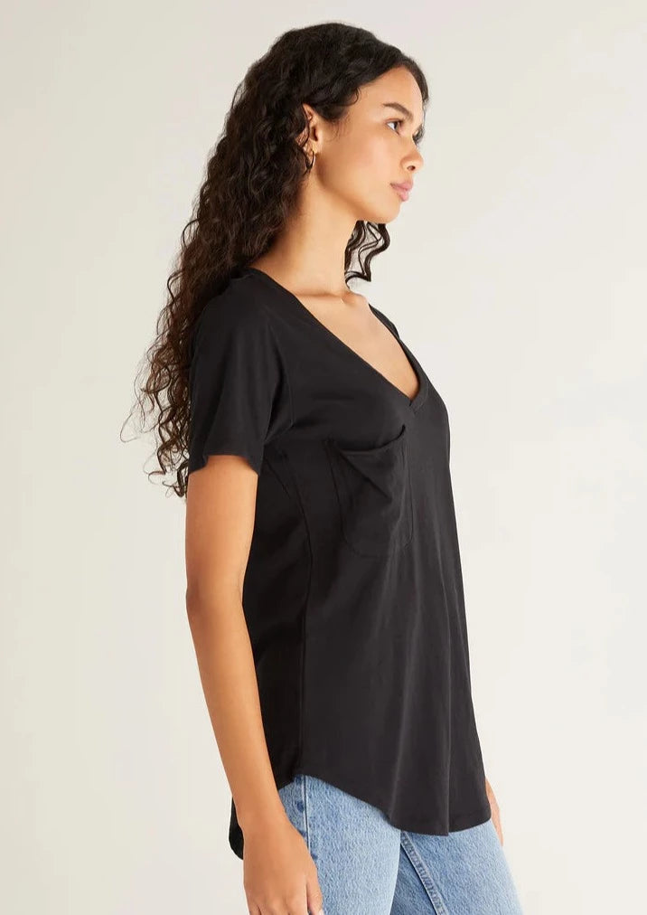 The signature tee you know and love, the Pocket Tee, is a must for your everyday wardrobe. With its signature slouch pocket and v-neckline, this flattering soft Jersey Knit tee continues to find its way into every closet, especially with that flattering rounded hem. This tee tends to run a little big and could be sized down.