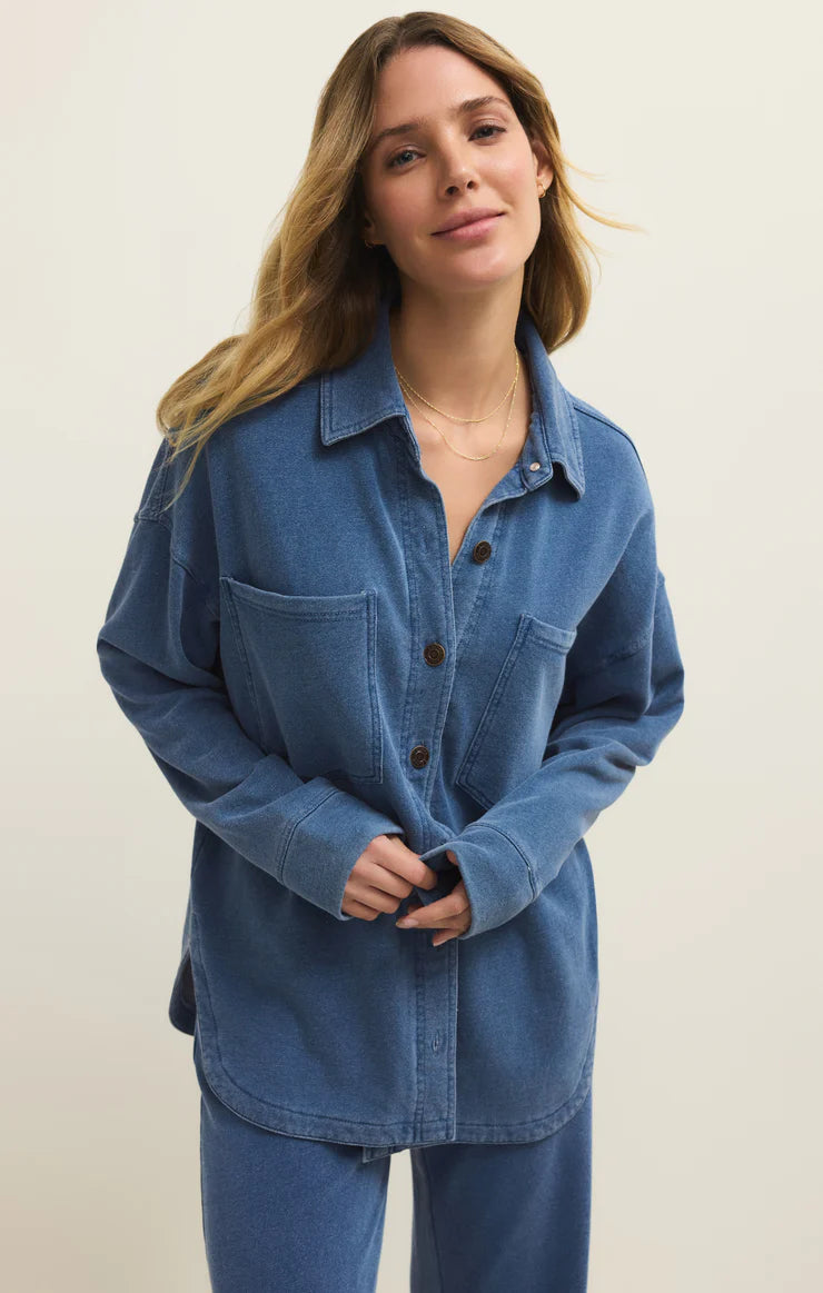 Our All Day jacket is a best seller, especially in our knit denim french terry fabric. This relaxed shirt jacket can be worn open or buttoned for a versatile layer you'll want to live in all year.