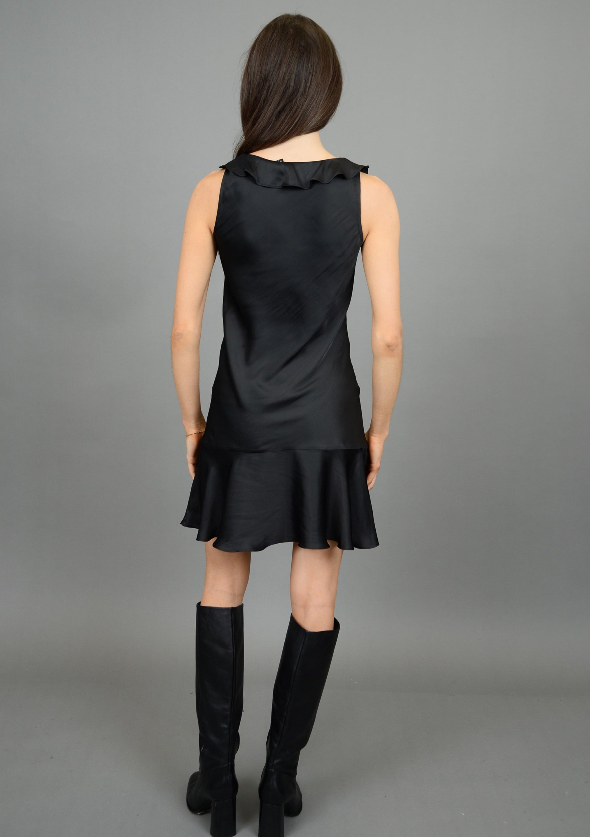 Details: Elevate your style with the Finlie Ruffled V-Neck Mini Dress. The elegant ruffle detail adds a fancy touch to this sleek black dress. Perfect for any occasion, it will make you look and feel confident and stylish.