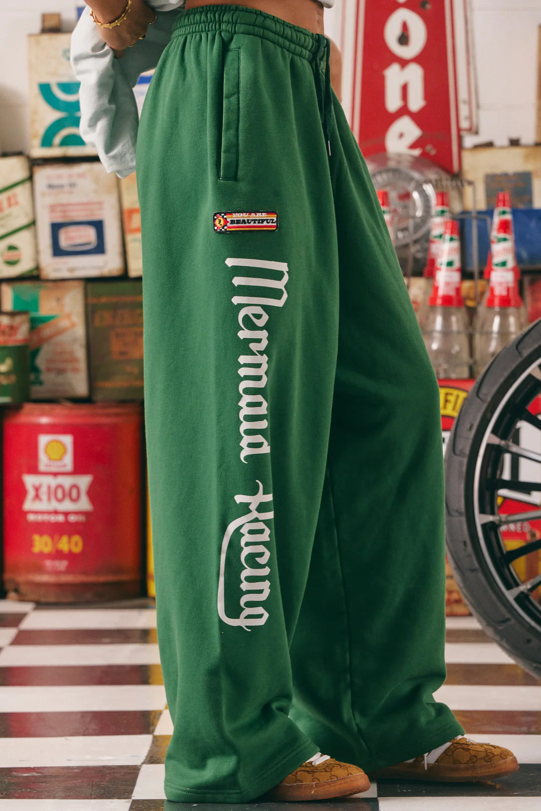 Made from our buttery-soft vintage washed fleece, the Mermaid Racing Wide Leg sweat pants are built for serious comfort with a side of statement. Wide-leg silhouette for maximum vibe, racing-inspired badges for that extra edge — these sweats were made to move with you, whether you’re hitting the track or the couch.