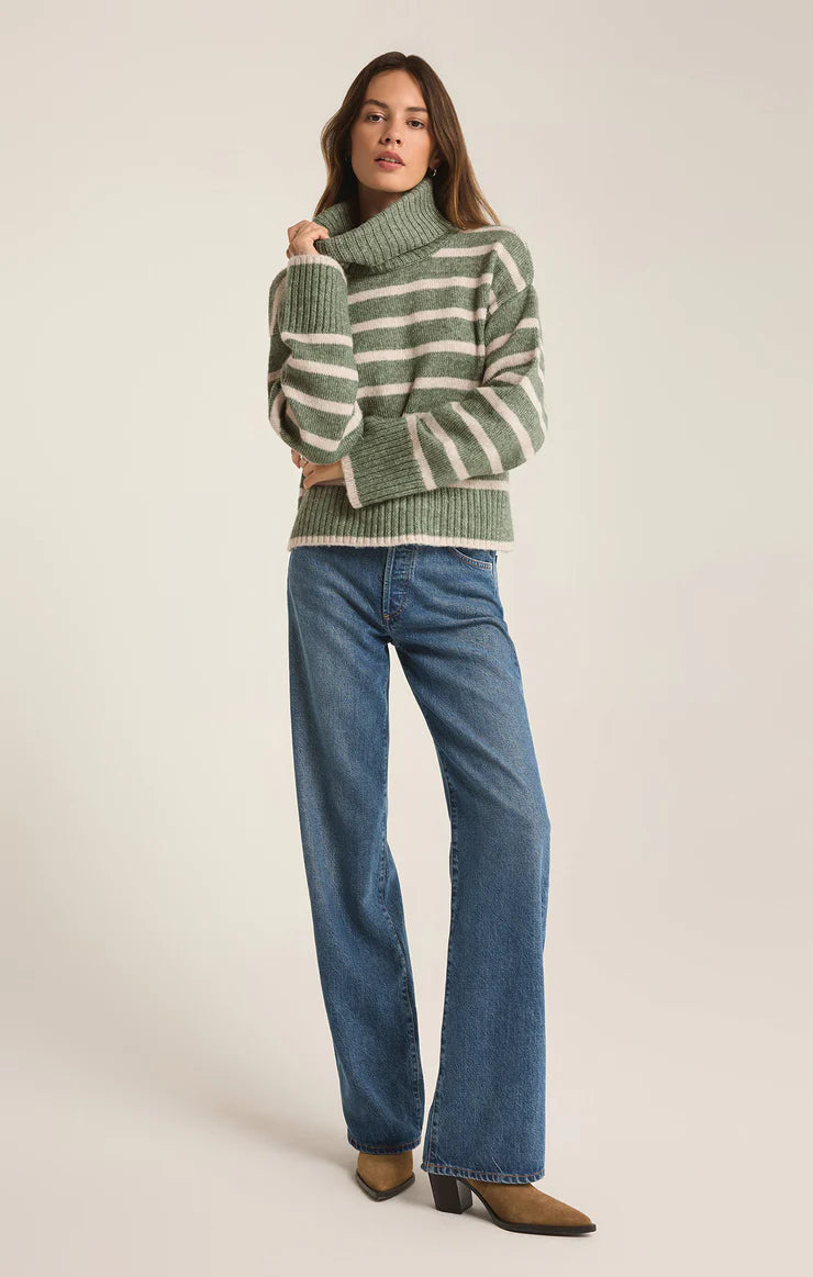 Meet your new favorite turtleneck sweater, crafted from our midweight plush and soft Yummy Yarns for ultimate coziness. Featuring a classic stripe design, it's perfect for adding a touch of warmth and style to any outfit.