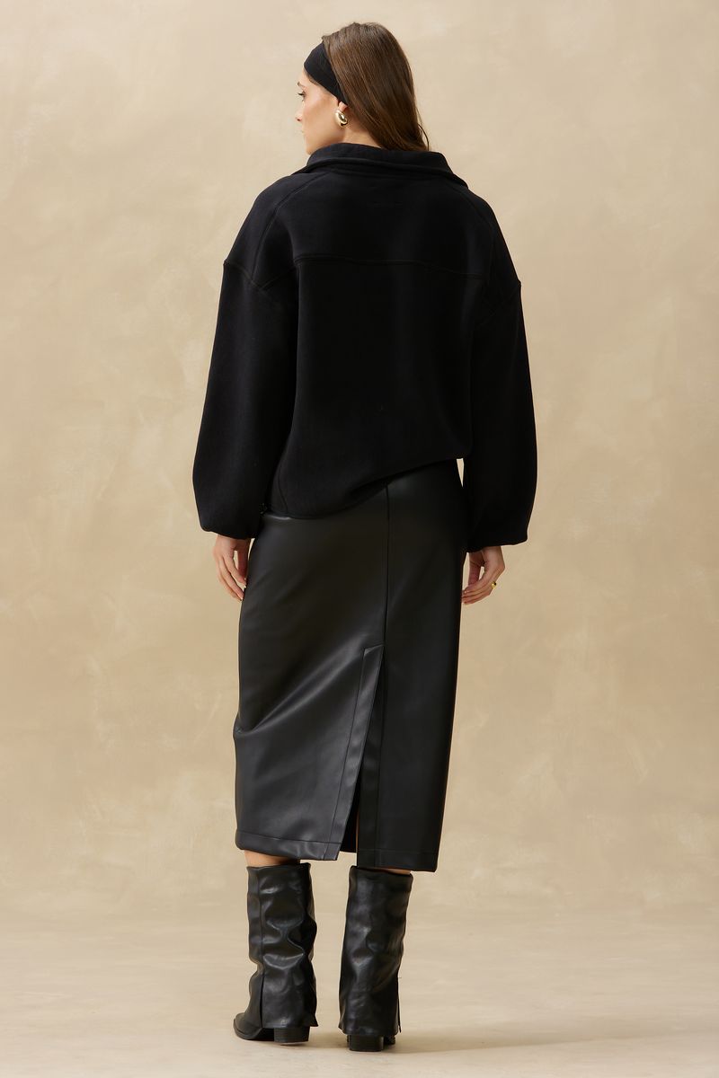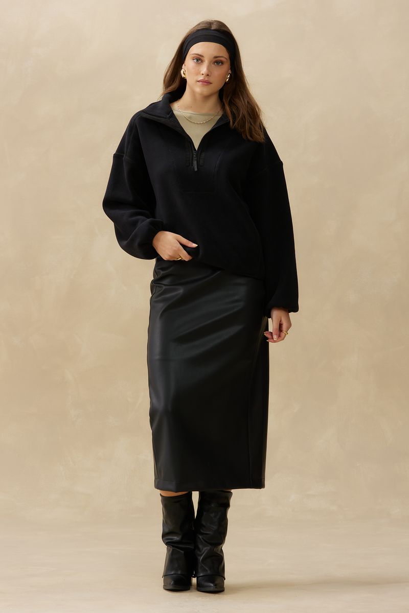 Stay cozy and chic with the Polar Leather Zip-up by Kuwalla Tee. This stylish piece combines the warmth of a plush, oversized pullover with the sleek edge faux leather detailing. Featuring a half-zip design and relaxed fit, it’s perfect for layering, while maintaining an effortlessly polished look. This zip-up is true to size and provides both comfort and structure. Whether you’re dressing up or keeping it casual, the Polar Leather Zip-up is a versatile wardrobe staple that blends fashion with function