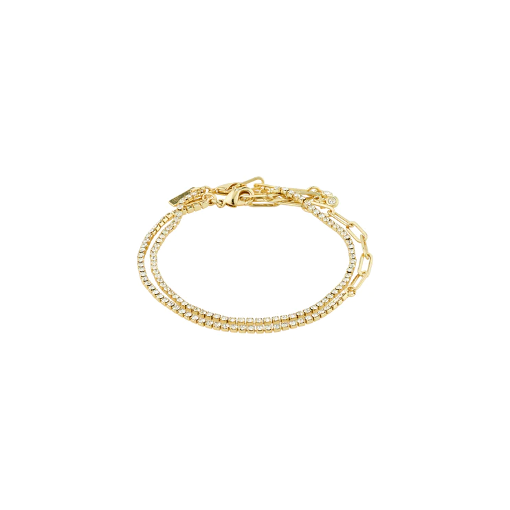 Stay easy breezy and wear the gold-plated ROWAN bracelet from Pilgrim for the occasions of the season. The bracelet is a 2-in-1 set that combines glamorous Preciosa crystals with a simple and classic cable chain. A delicate and sparkling set of bracelets for a classy, layered look that you can wear no matter the outfit or occasion. The bracelets are made from min. 75% recycled material with care for the environment.