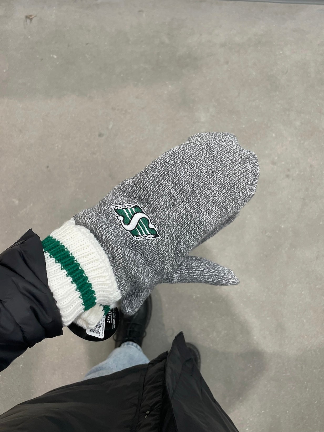 Details: Sherpa lining, Saskatchewan Roughrider detail, ribbed cuff.