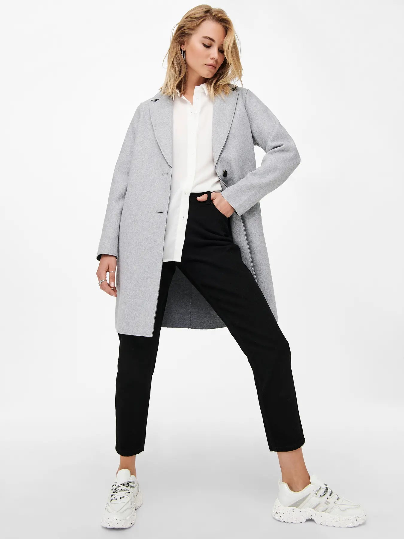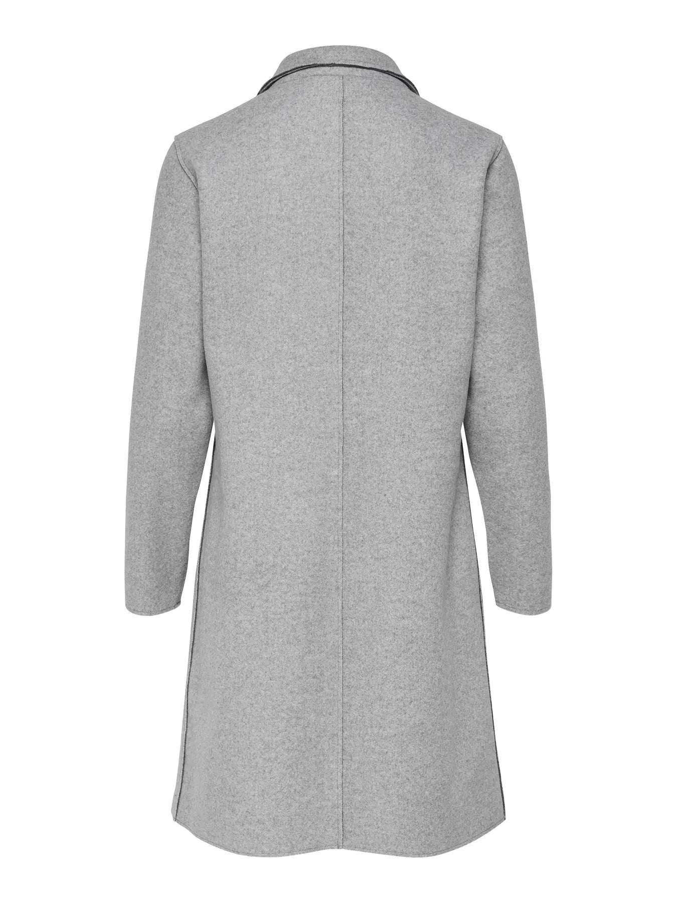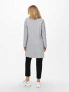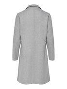 Sleek and timeless, this light grey coat adds instant polish to any look. With its clean lines and tailored fit, it’s the perfect layer for both workdays and weekends.