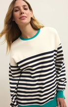Meet your new go-to sweatshirt. This Z SUPPLY striped essential features a crewneck with contrast trim on the neckline, cuffs, and waistband and a side split hem.