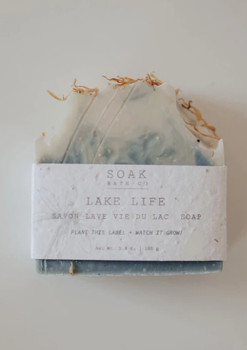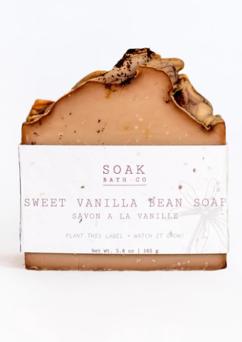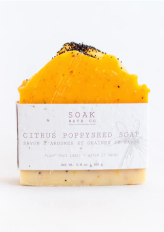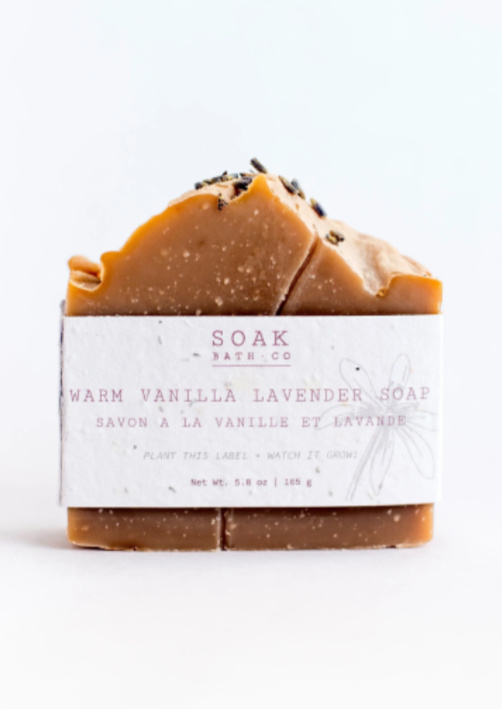 This gorgeous bar is completely zero waste and sustainable. The label on each SOAK Bath Co bar is made of biodegradable, plantable seed paper so you can plant the label and it will grow into wildflowers!