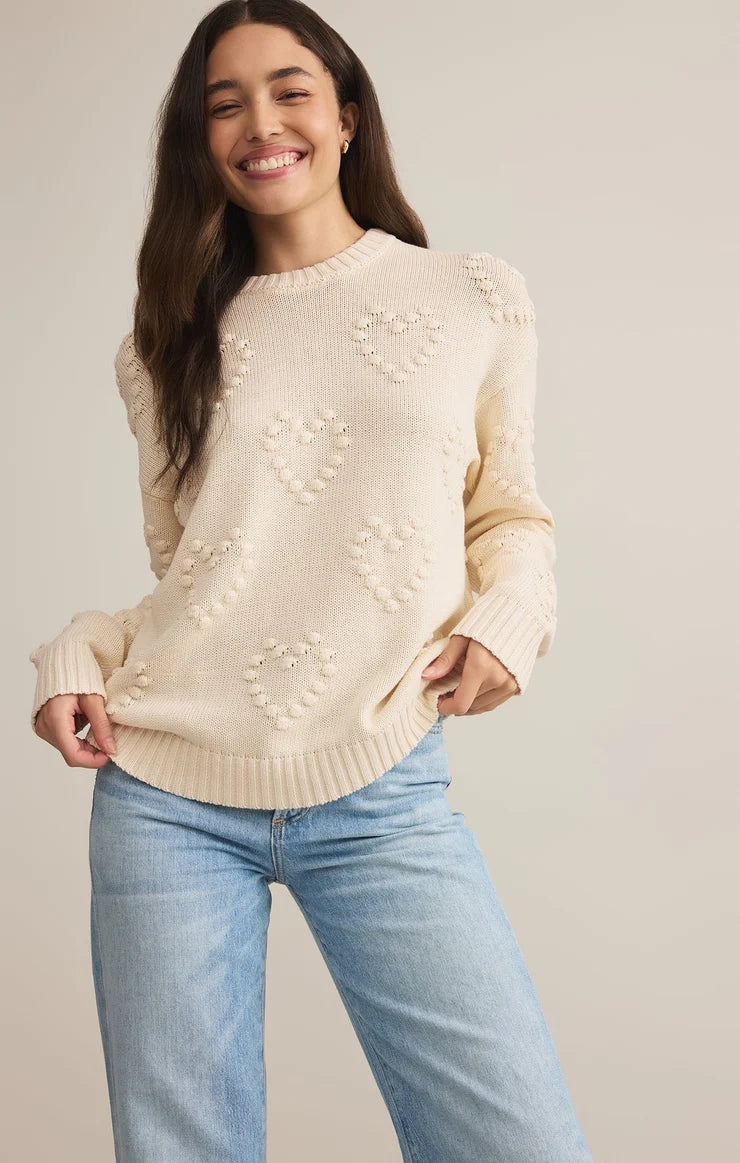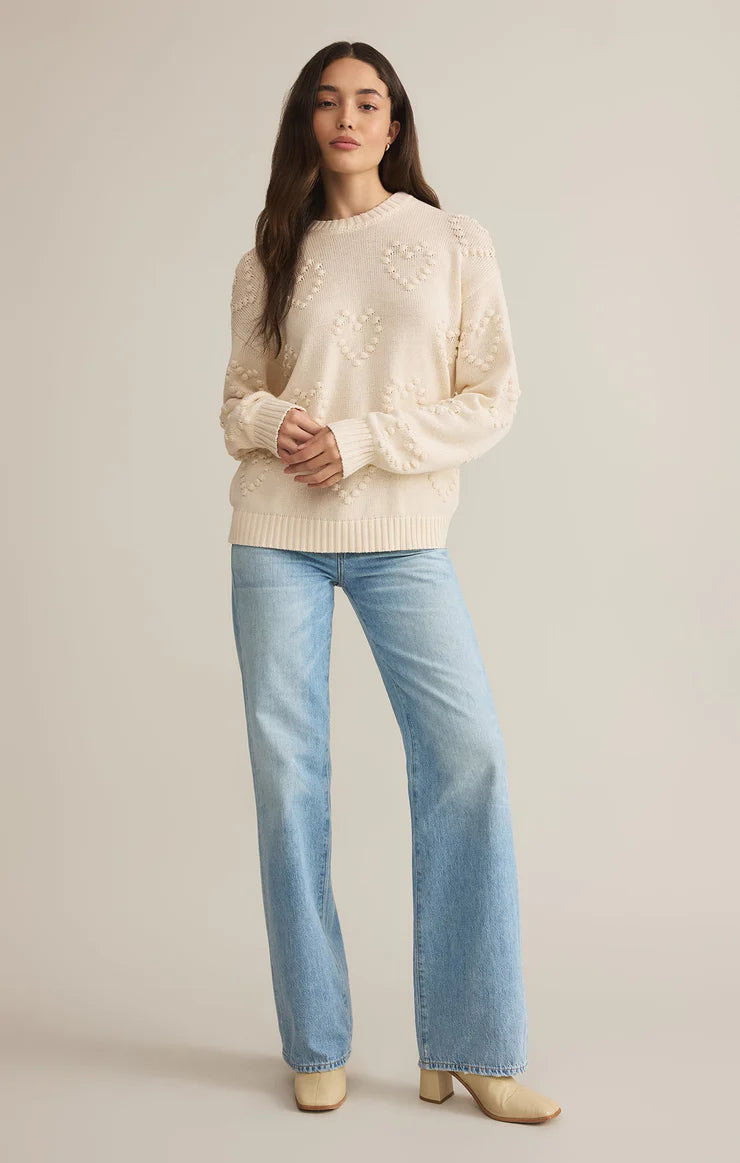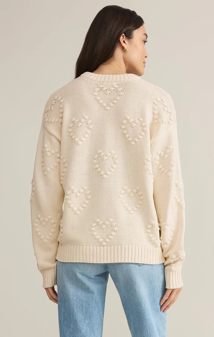 With a relaxed fit and longer length, this midweight sweater with a 3-dimensional heart pattern is as cozy as it is cute. It’s a perfect layer for laid-back days when you're looking for something a little extra.